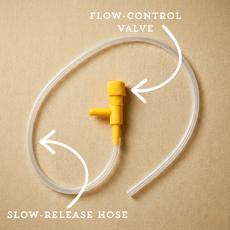 • Slow-release hose, Flow-control valve